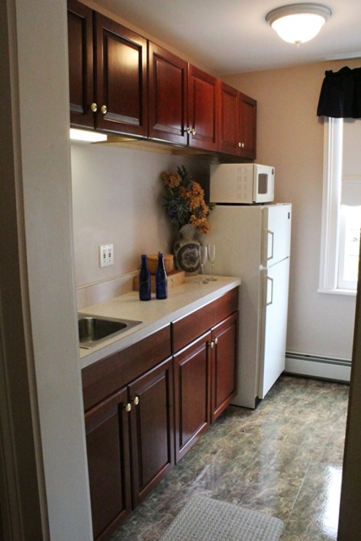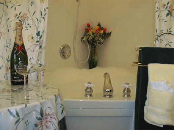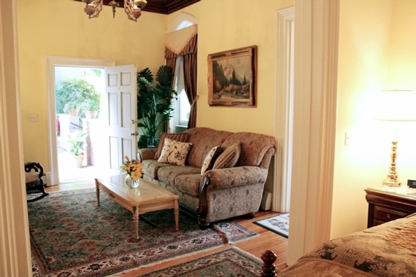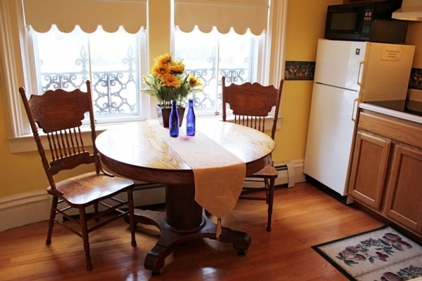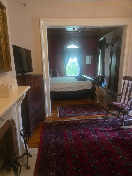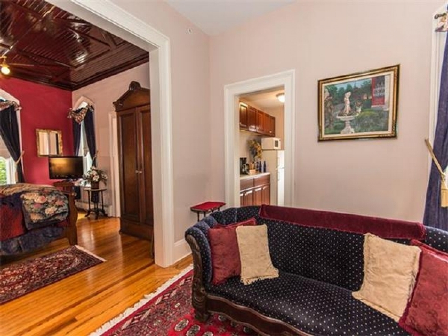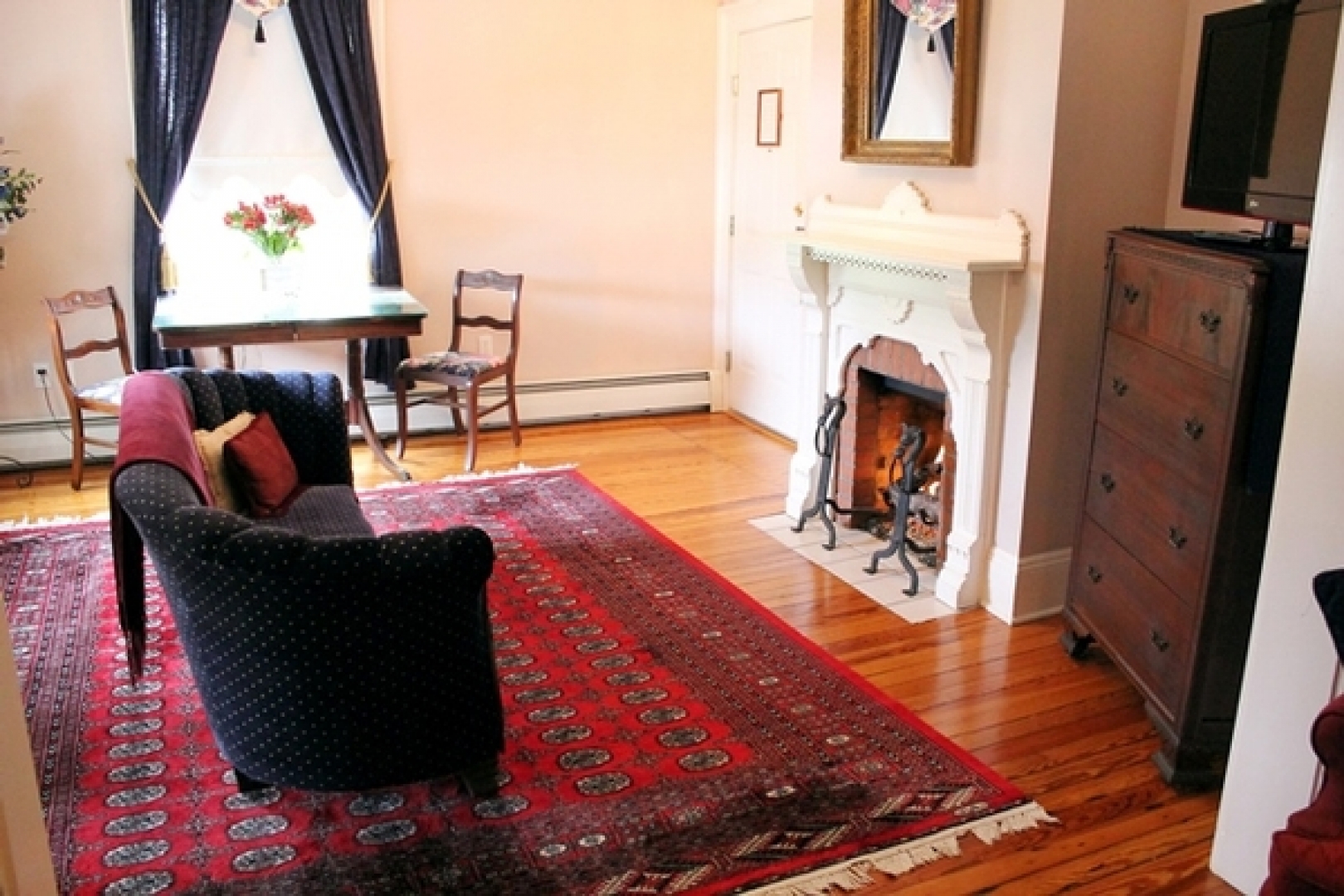 Suites include King-size, memory foam, mattresses. The living rooms are furnished with Victorian Antiques and a gas fireplace for cozy nights when there is a chill in the air. The fully stocked kitchen area provides access to a full size refrigerator, microwave, sink and appropriate cabinetry. The oversized bathroom is centered around a two person Jacuzzi tub and shower. Bathrooms are tastefully decorated and offer modern facilities in Victorian style. These suites are nonsmoking.