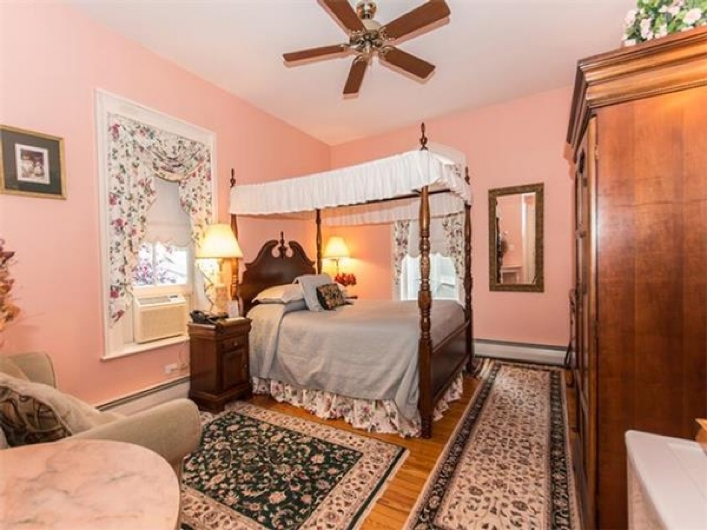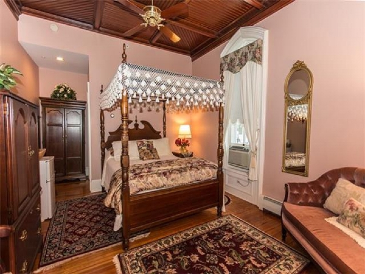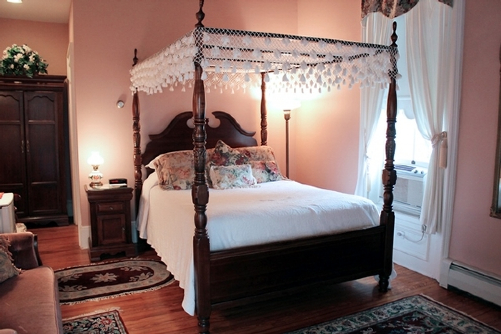 These rooms are furnished with a Victorian Queen Canopy Bed. Antiques compliment an elegant atmosphere, showcasing original wooden floors, oversized windows and high ceilings. Rooms come equipped with a small refrigerator and microwave and coffee and tea service is provided. Bathrooms are tastefully decorated and offer modern facilities in Victorian style. These rooms are nonsmoking.